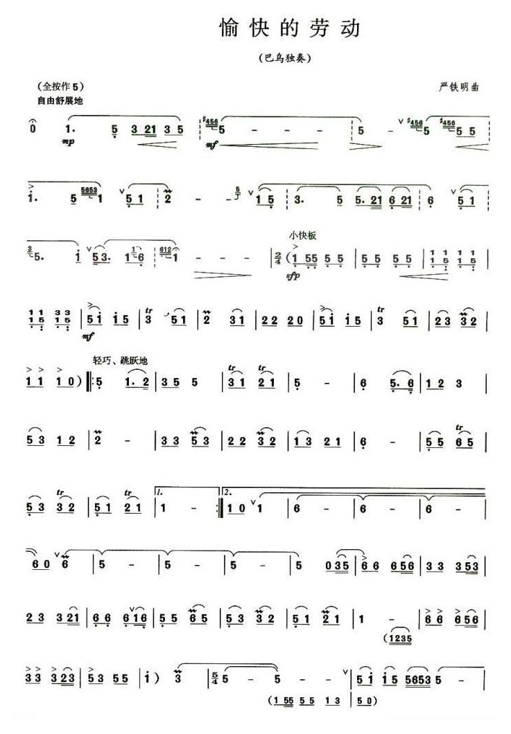 巴乌乐谱《愉快的劳动》简谱五线谱附歌词是乐器资源网于2017年04月10日 17:25:45整理更新,内容收录在巴乌乐谱栏目;乐器资源网免费分享专业、准确、规范、高清的巴乌乐谱简谱五线谱歌词等电子版资料,欢迎在线免费下载;乐器资源网无需注册会员,即可直接免费下载各类乐器学习相关资源。