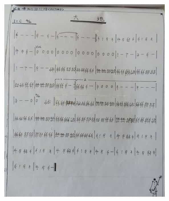 贝司谱【大地】手写版简谱五线谱附歌词是乐器资源网于2015年10月09日 09:39:27整理更新,内容收录在电贝司乐谱栏目;乐器资源网免费分享专业、准确、规范、高清的电贝司乐谱简谱五线谱歌词等电子版资料,欢迎在线免费下载;乐器资源网无需注册会员,即可直接免费下载各类乐器学习相关资源。
