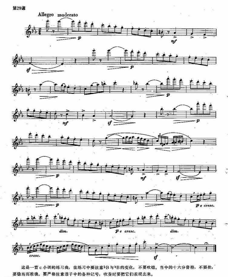 长笛练习曲100课:第29课 c小调的练习曲