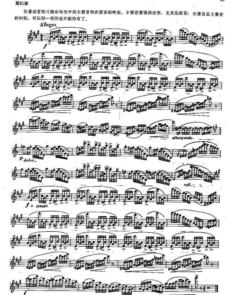 长笛练习曲100课:第81课 主要音和次要音练习曲