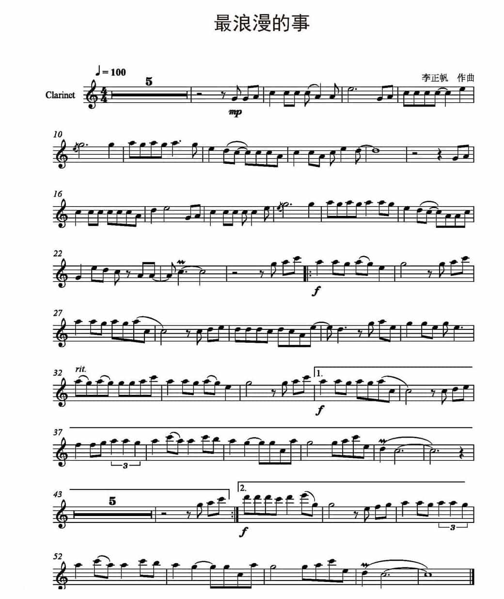 单簧管乐谱《最浪漫的事》简谱/五线谱附歌词是乐器资源网于2017年04月03日 13:07:47整理更新,内容收录在单簧管乐谱栏目;乐器资源网免费分享专业、准确、规范、高清的单簧管乐谱简谱/五线谱/歌词等电子版资料,欢迎在线免费下载;乐器资源网无需注册会员,即可直接免费下载各类乐器学习相关资源。
