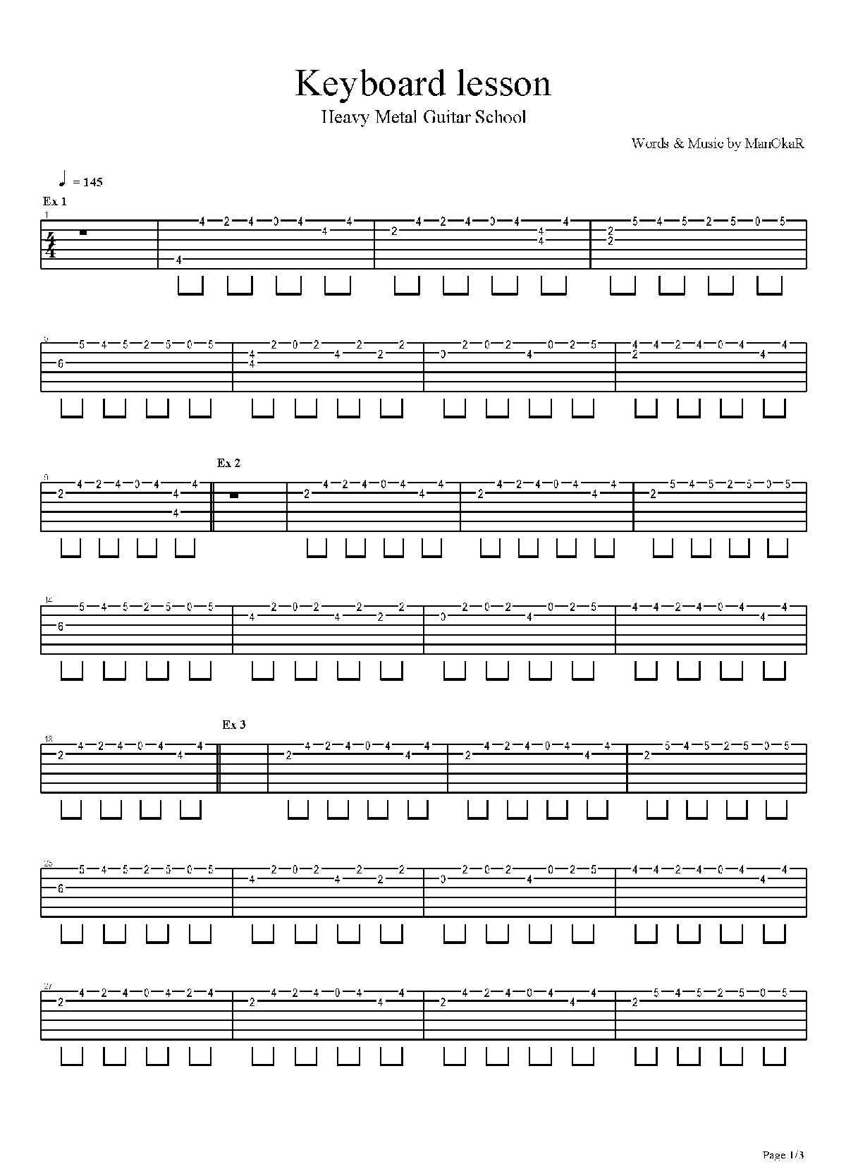 电吉他练习谱《Heavy Metal Guitar School - Lesson For Bands Part II》简谱五线谱附歌词是乐器资源网于2017年04月02日 10:16:41整理更新,内容收录在电吉他乐谱栏目;乐器资源网免费分享专业、准确、规范、高清的电吉他乐谱简谱五线谱歌词等电子版资料,欢迎在线免费下载;乐器资源网无需注册会员,即可直接免费下载各类乐器学习相关资源。