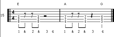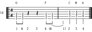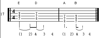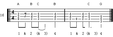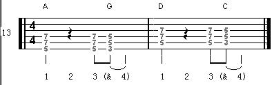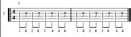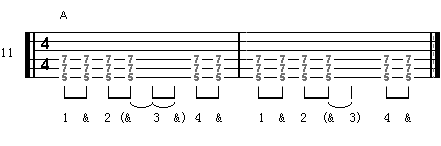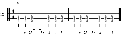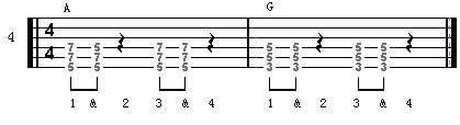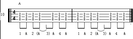 下面都是带和弦变换的起拍节奏,首先听录音,用脚根据谱面打拍子,完全熟练以后再开始慢练。