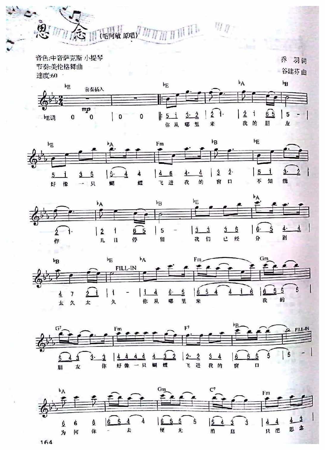 九十年代流行电子琴曲谱《思念》简谱五线谱附歌词是乐器资源网于2017年04月09日 18:35:10整理更新,内容收录在电子琴乐谱栏目;乐器资源网免费分享专业、准确、规范、高清的电子琴乐谱简谱五线谱歌词等电子版资料,欢迎在线免费下载;乐器资源网无需注册会员,即可直接免费下载各类乐器学习相关资源。