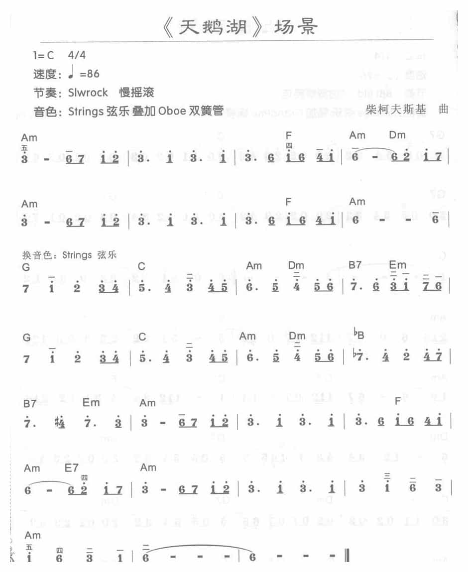 电子琴C大调a小调乐曲【天鹅湖 场景】简谱带和弦简谱五线谱附歌词是乐器资源网于2017年03月22日 21:39:36整理更新,内容收录在电子琴乐谱栏目;乐器资源网免费分享专业、准确、规范、高清的电子琴乐谱简谱五线谱歌词等电子版资料,欢迎在线免费下载;乐器资源网无需注册会员,即可直接免费下载各类乐器学习相关资源。