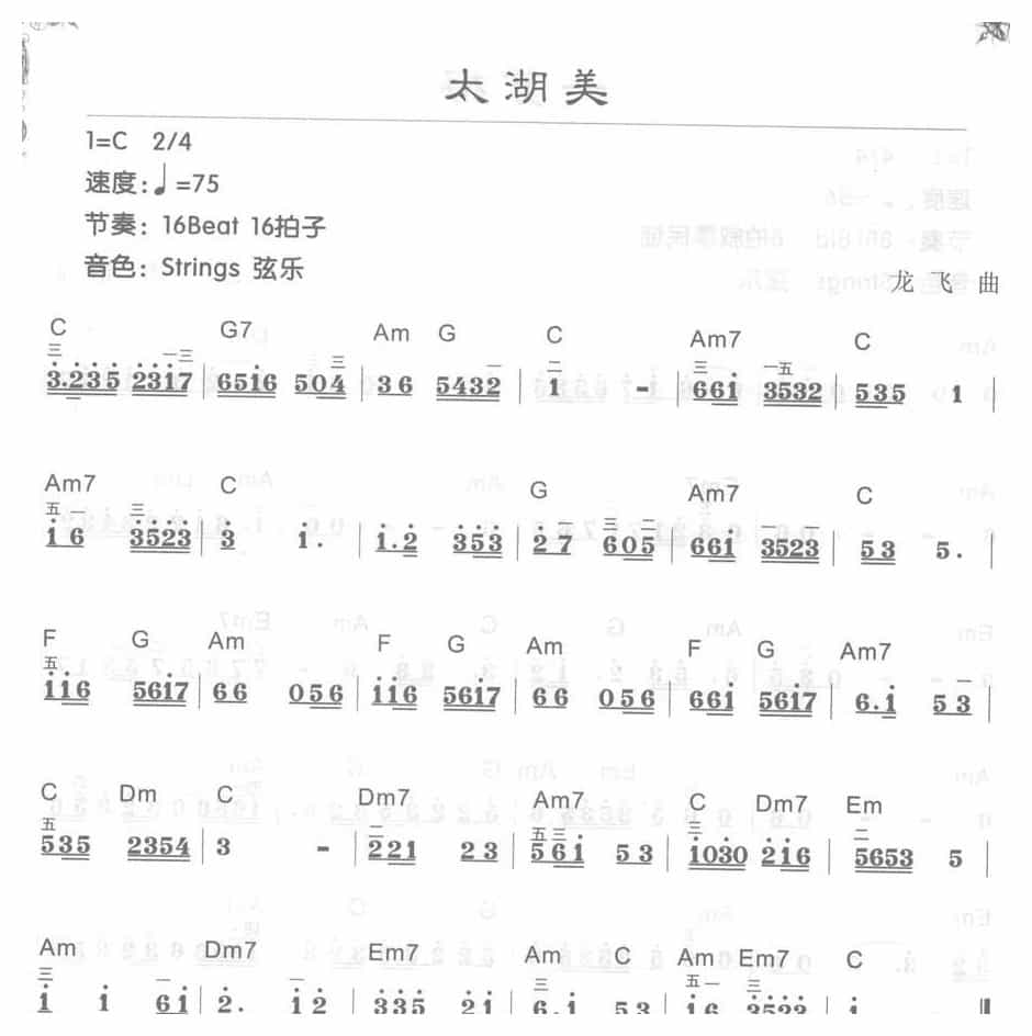 电子琴C大调a小调乐曲【太湖美】简谱带和弦简谱五线谱附歌词是乐器资源网于2017年03月22日 22:16:57整理更新,内容收录在电子琴乐谱栏目;乐器资源网免费分享专业、准确、规范、高清的电子琴乐谱简谱五线谱歌词等电子版资料,欢迎在线免费下载;乐器资源网无需注册会员,即可直接免费下载各类乐器学习相关资源。