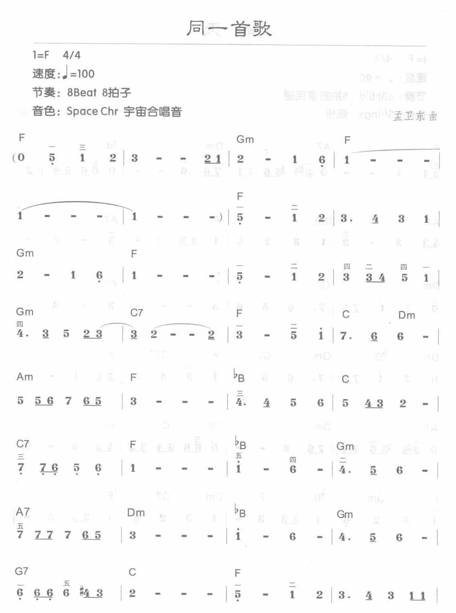 电子琴F大调d小调乐曲【同一首歌】简谱配和弦简谱五线谱附歌词是乐器资源网于2017年03月23日 12:50:00整理更新,内容收录在电子琴乐谱栏目;乐器资源网免费分享专业、准确、规范、高清的电子琴乐谱简谱五线谱歌词等电子版资料,欢迎在线免费下载;乐器资源网无需注册会员,即可直接免费下载各类乐器学习相关资源。