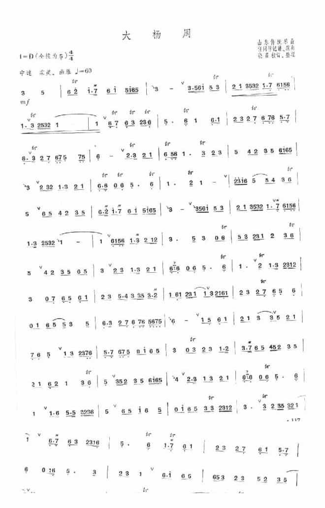 大杨周 简谱五线谱附歌词是乐器资源网于2012年11月08日 23:59:11整理更新,内容收录在竹笛乐谱栏目;乐器资源网免费分享专业、准确、规范、高清的竹笛乐谱简谱五线谱歌词等电子版资料,欢迎在线免费下载;乐器资源网无需注册会员,即可直接免费下载各类乐器学习相关资源。