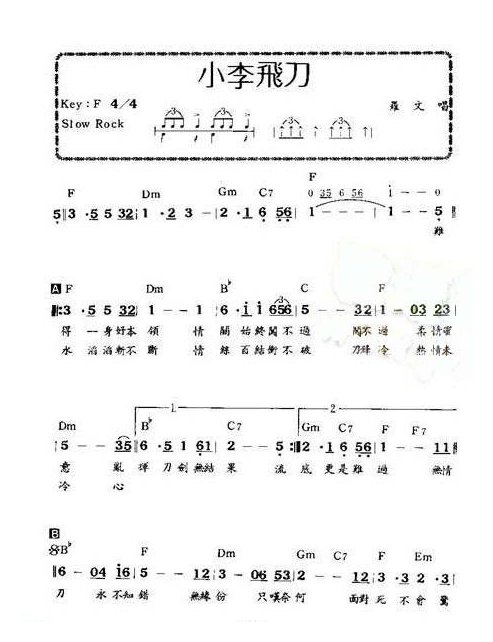 洞箫曲谱【小李飞刀】简谱五线谱附歌词是乐器资源网于2017年03月14日 08:28:48整理更新,内容收录在洞箫乐谱栏目;乐器资源网免费分享专业、准确、规范、高清的洞箫乐谱简谱五线谱歌词等电子版资料,欢迎在线免费下载;乐器资源网无需注册会员,即可直接免费下载各类乐器学习相关资源。