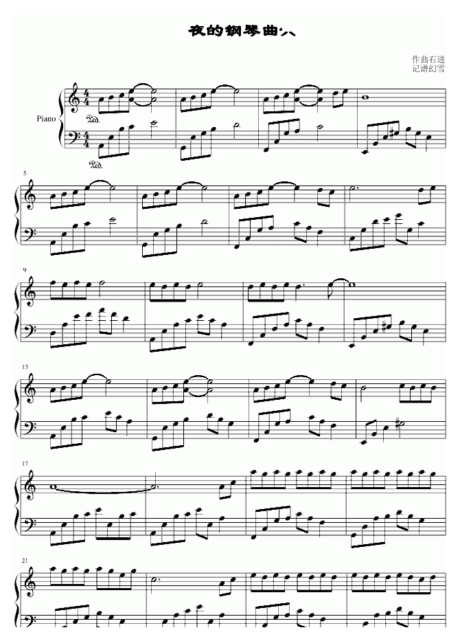 石进 夜的钢琴曲六 钢琴谱