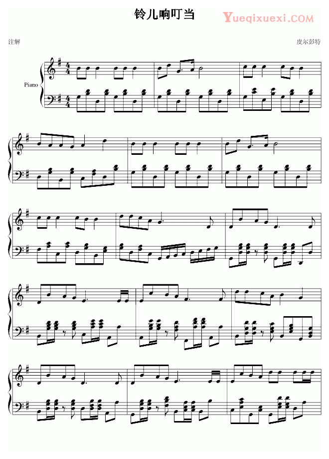 世界名曲 铃儿响叮当 钢琴谱简谱五线谱附歌词是乐器资源网于2015年01月03日 21:32:39整理更新,内容收录在钢琴乐谱栏目;乐器资源网免费分享专业、准确、规范、高清的钢琴乐谱简谱五线谱歌词等电子版资料,欢迎在线免费下载;乐器资源网无需注册会员,即可直接免费下载各类乐器学习相关资源。