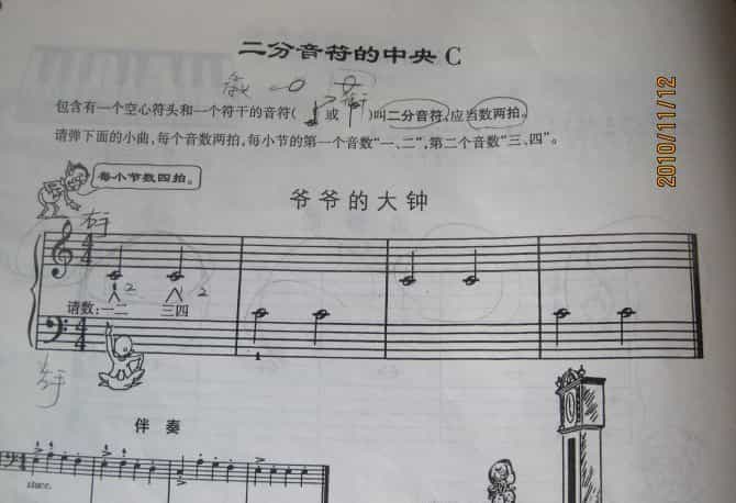 就是弹《爷爷的大钟》这个谱曲。可惜我忘了让大大录下来了,这个大大还得好好调教调教。