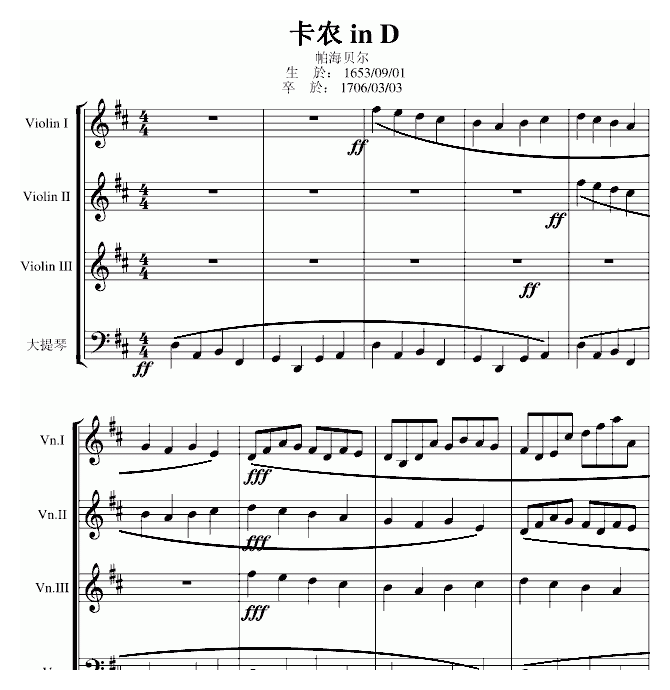 帕赫贝尔 Pachelbel 卡农交响曲(3小提琴+1大提琴)
