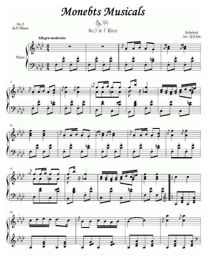 舒伯特 音乐的瞬间第三首简谱五线谱附歌词是乐器资源网于2014年11月07日 14:49:57整理更新,内容收录在钢琴乐谱栏目;乐器资源网免费分享专业、准确、规范、高清的钢琴乐谱简谱五线谱歌词等电子版资料,欢迎在线免费下载;乐器资源网无需注册会员,即可直接免费下载各类乐器学习相关资源。