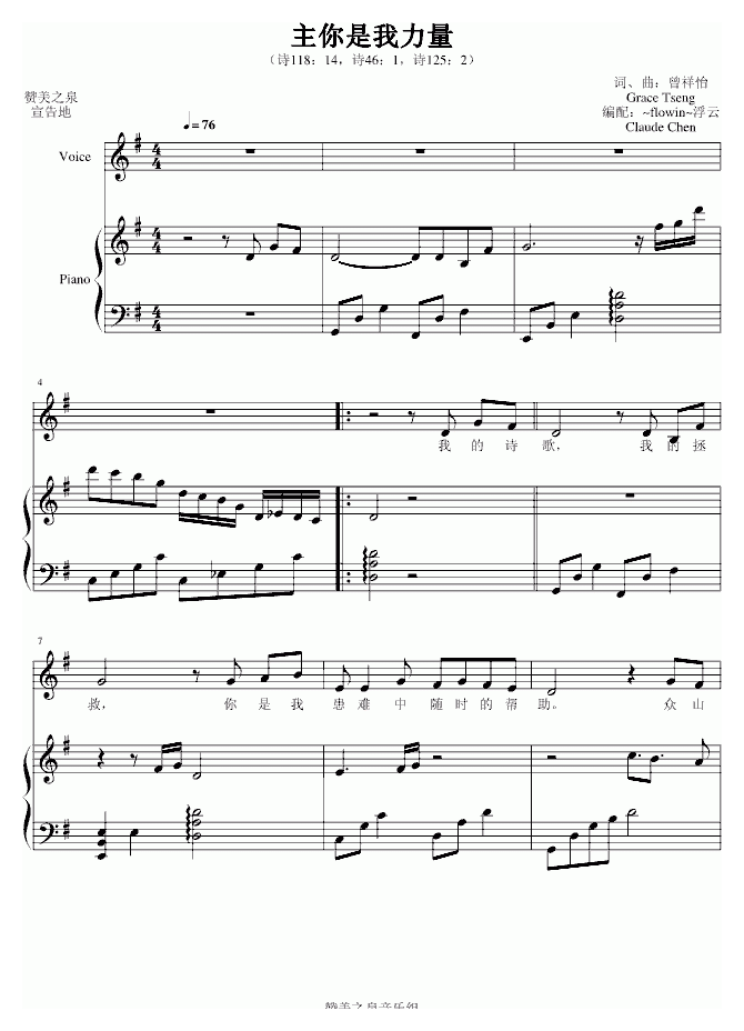 赞美之泉 主你是我力量简谱五线谱附歌词是乐器资源网于2014年11月07日 15:13:35整理更新,内容收录在钢琴乐谱栏目;乐器资源网免费分享专业、准确、规范、高清的钢琴乐谱简谱五线谱歌词等电子版资料,欢迎在线免费下载;乐器资源网无需注册会员,即可直接免费下载各类乐器学习相关资源。