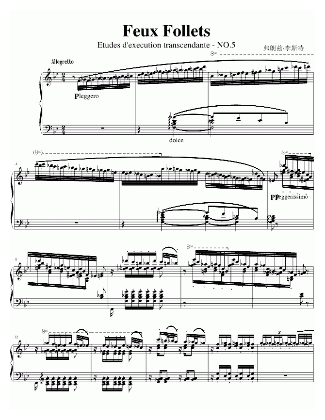 李斯特 Liszt Feux Follets简谱五线谱附歌词是乐器资源网于2014年11月09日 11:21:44整理更新,内容收录在钢琴乐谱栏目;乐器资源网免费分享专业、准确、规范、高清的钢琴乐谱简谱五线谱歌词等电子版资料,欢迎在线免费下载;乐器资源网无需注册会员,即可直接免费下载各类乐器学习相关资源。