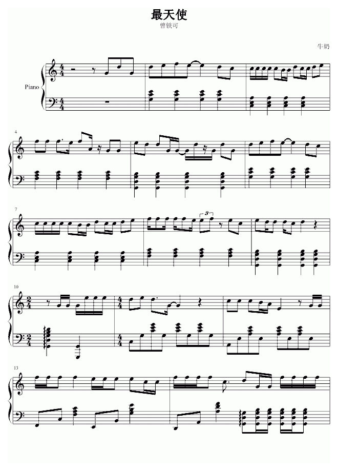曾轶可钢琴谱【最天使】简谱五线谱附歌词是乐器资源网于2015年03月18日 21:47:37整理更新,内容收录在钢琴乐谱栏目;乐器资源网免费分享专业、准确、规范、高清的钢琴乐谱简谱五线谱歌词等电子版资料,欢迎在线免费下载;乐器资源网无需注册会员,即可直接免费下载各类乐器学习相关资源。