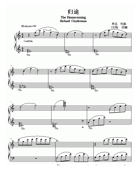 克莱德曼 归途简谱五线谱附歌词是乐器资源网于2014年10月28日 17:18:46整理更新,内容收录在钢琴乐谱栏目;乐器资源网免费分享专业、准确、规范、高清的钢琴乐谱简谱五线谱歌词等电子版资料,欢迎在线免费下载;乐器资源网无需注册会员,即可直接免费下载各类乐器学习相关资源。