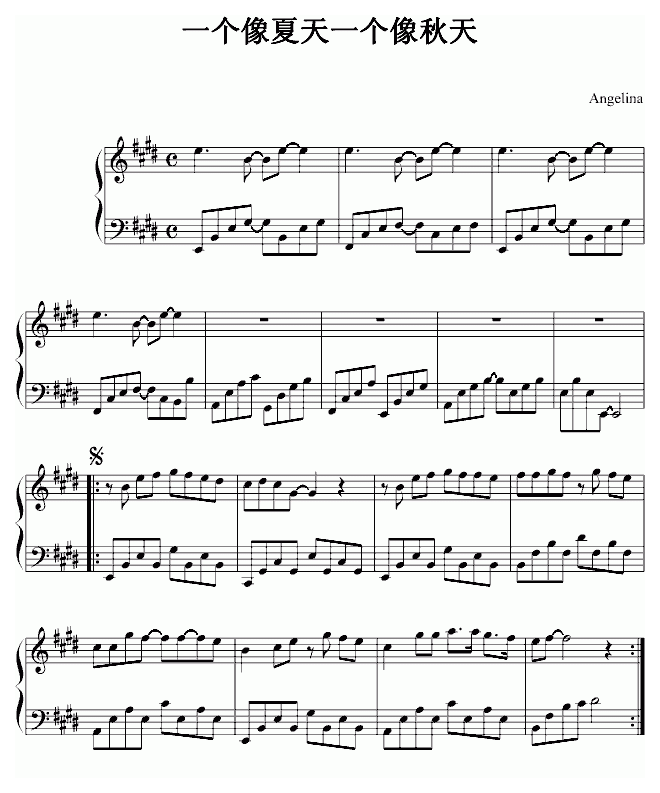 范玮琪钢琴谱【一个像夏天 一个像秋天】简谱五线谱附歌词是乐器资源网于2015年04月30日 15:48:03整理更新,内容收录在钢琴乐谱栏目;乐器资源网免费分享专业、准确、规范、高清的钢琴乐谱简谱五线谱歌词等电子版资料,欢迎在线免费下载;乐器资源网无需注册会员,即可直接免费下载各类乐器学习相关资源。