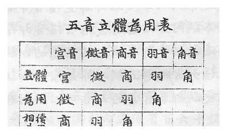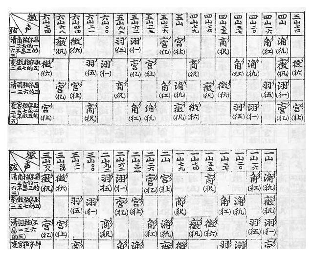 上表羽音缺相续为用之声,角音就连为用之声也缺了。这都因为它的位当二变,二变本来就不可为用的。(琴谱中角音的曲采多借宫、徵为用,所以往往混入宫音。)