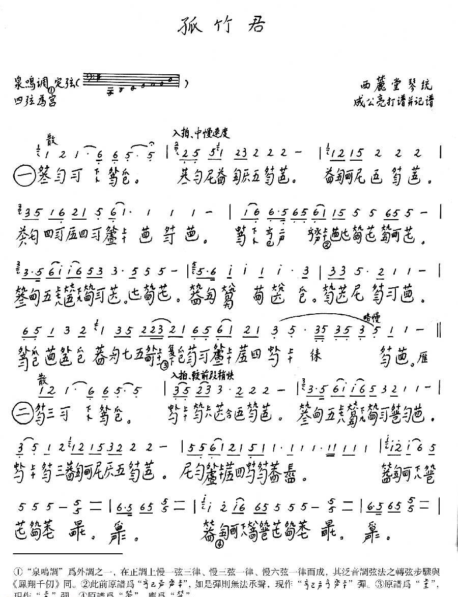 成公亮作曲古琴名曲《孤竹君》高清乐谱