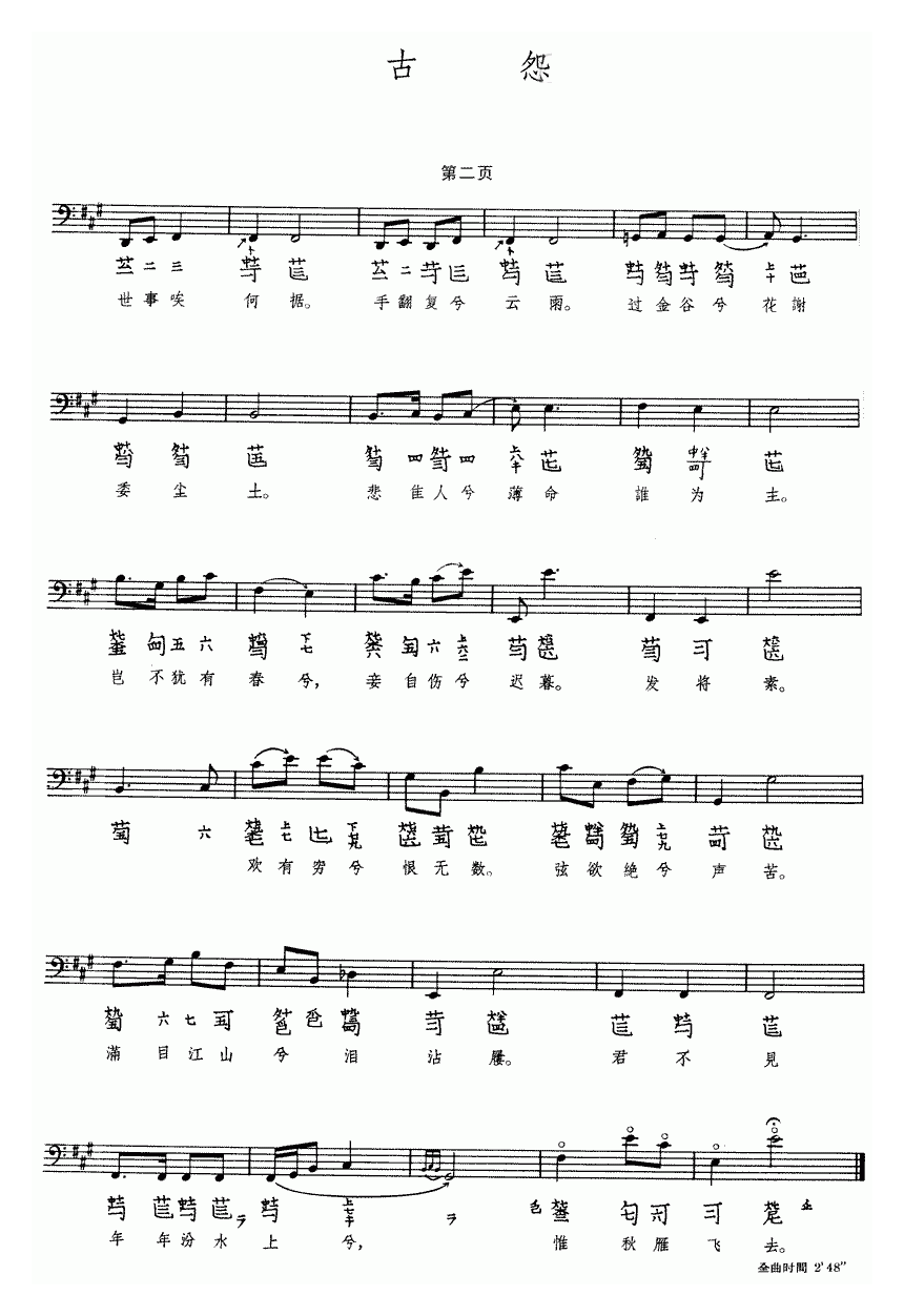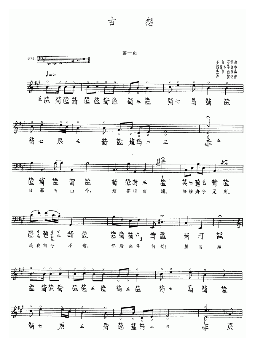 古琴曲《古怨》乐谱