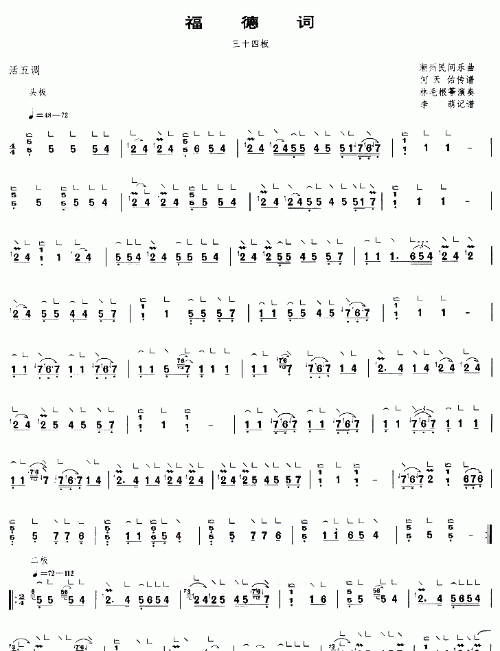 福德词简谱五线谱附歌词是乐器资源网于2012年11月06日 16:02:38整理更新,内容收录在古筝乐谱栏目;乐器资源网免费分享专业、准确、规范、高清的古筝乐谱简谱五线谱歌词等电子版资料,欢迎在线免费下载;乐器资源网无需注册会员,即可直接免费下载各类乐器学习相关资源。
