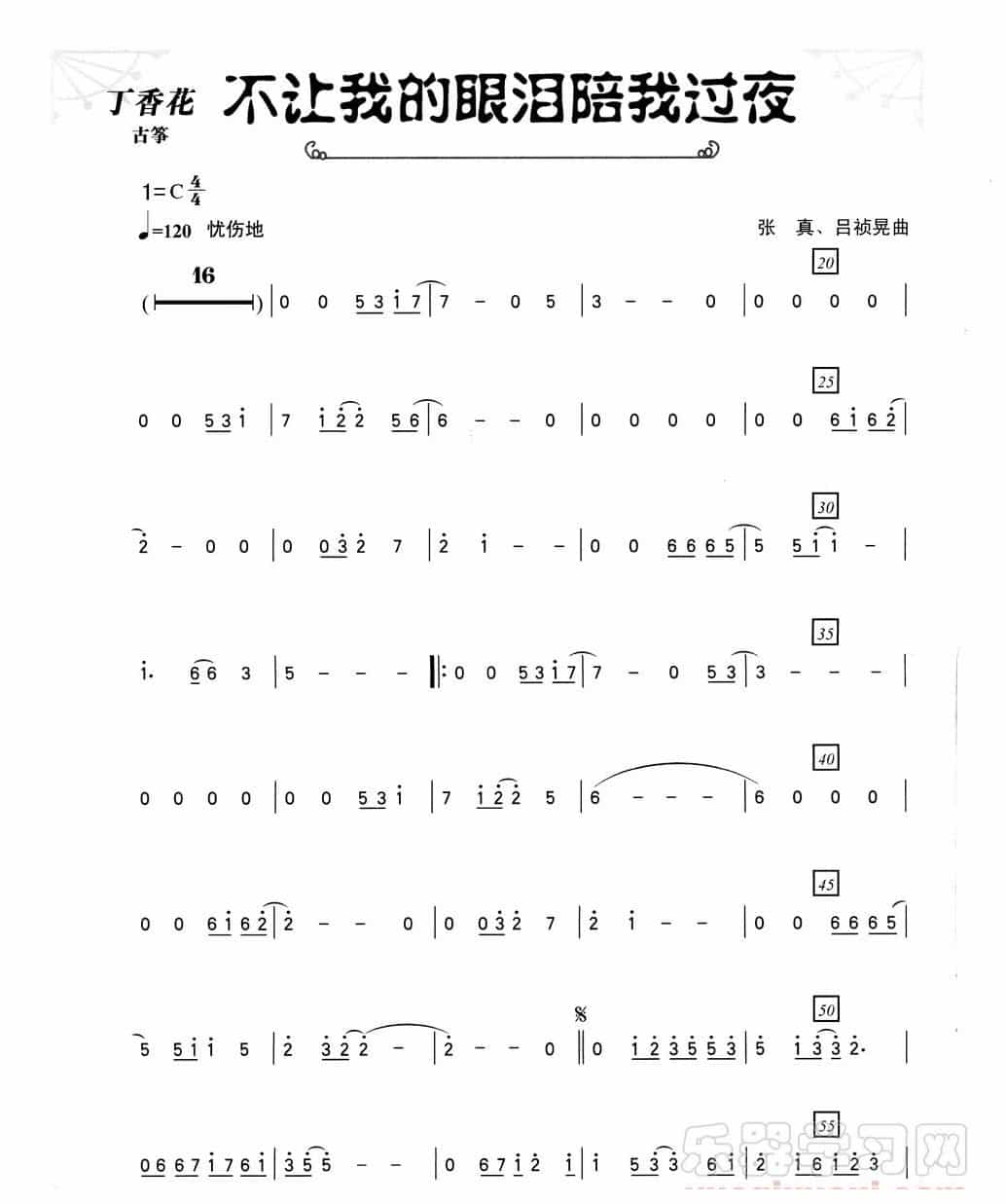 不要让我的眼泪陪我过夜简谱五线谱附歌词是乐器资源网于2012年11月09日 10:41:36整理更新,内容收录在古筝乐谱栏目;乐器资源网免费分享专业、准确、规范、高清的古筝乐谱简谱五线谱歌词等电子版资料,欢迎在线免费下载;乐器资源网无需注册会员,即可直接免费下载各类乐器学习相关资源。