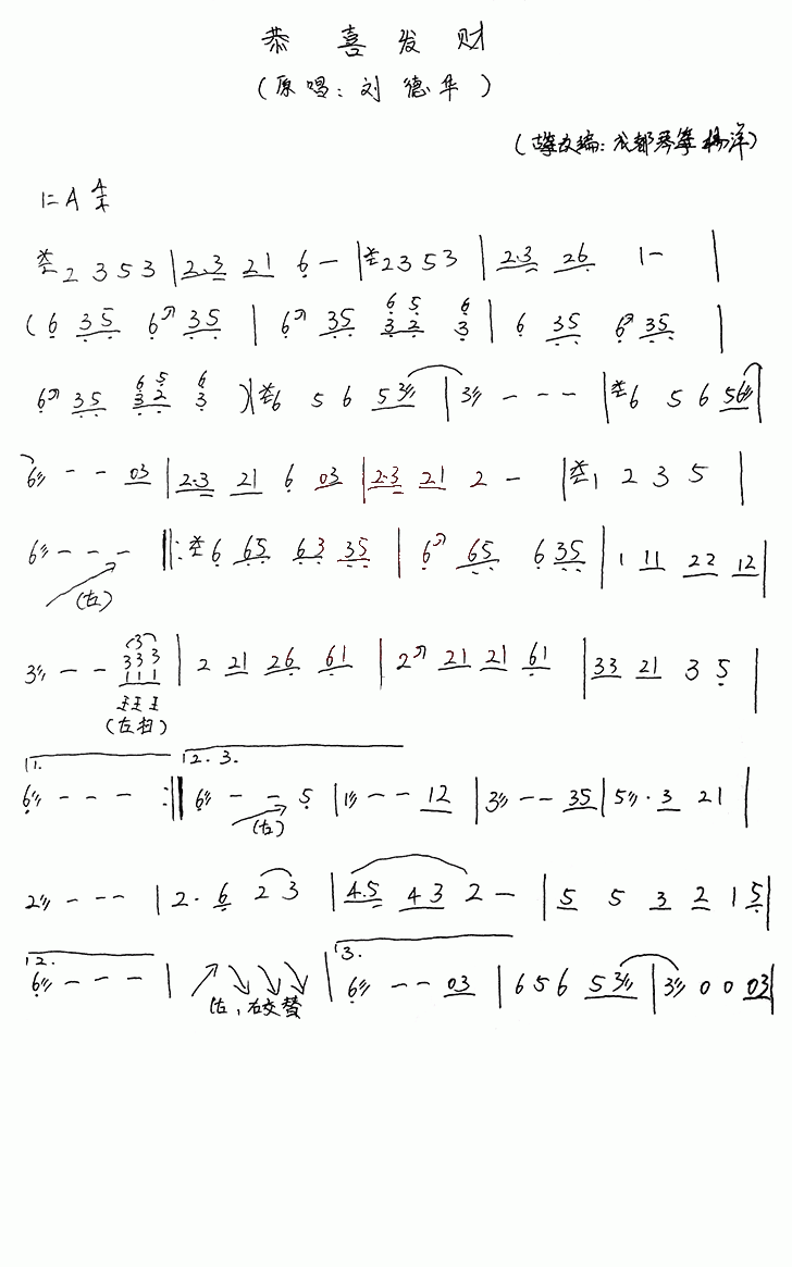 古筝谱【恭喜发财】