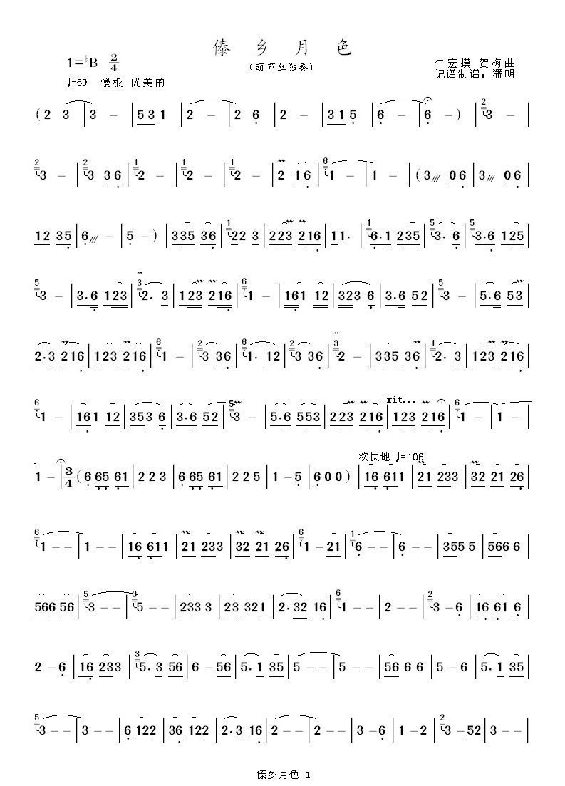 葫芦丝独奏曲:傣乡月色简谱五线谱附歌词是乐器资源网于2013年03月31日 19:45:02整理更新,内容收录在葫芦丝乐谱栏目;乐器资源网免费分享专业、准确、规范、高清的葫芦丝乐谱简谱五线谱歌词等电子版资料,欢迎在线免费下载;乐器资源网无需注册会员,即可直接免费下载各类乐器学习相关资源。