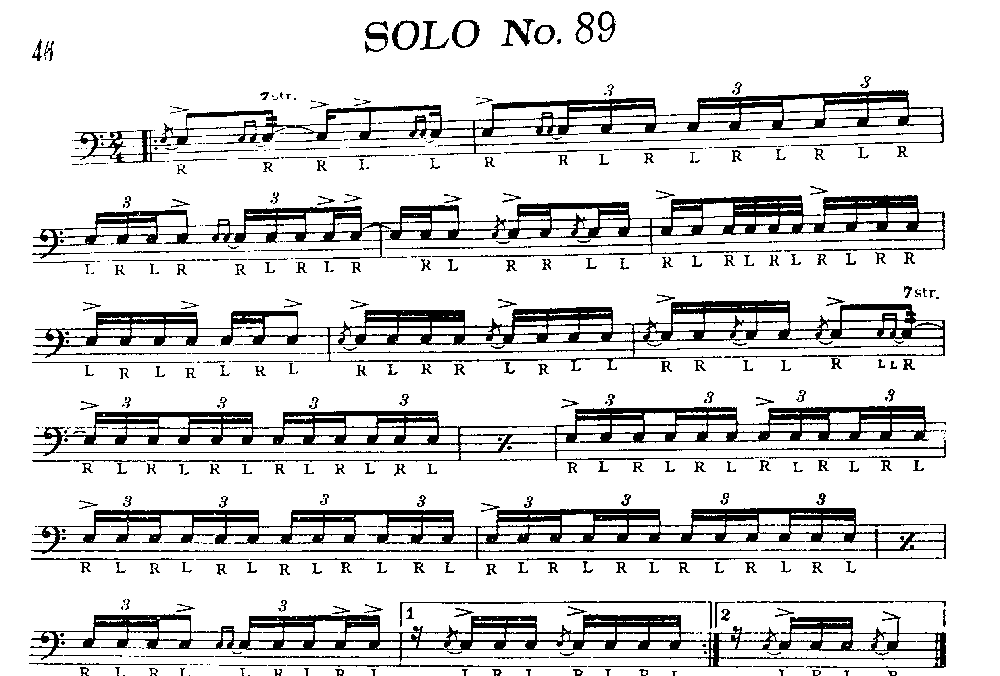 美国军鼓150条精华SOLO系列之《SOLO No.89》简谱五线谱附歌词是乐器资源网于2014年07月07日 15:44:11整理更新,内容收录在爵士鼓乐谱栏目;乐器资源网免费分享专业、准确、规范、高清的爵士鼓乐谱简谱五线谱歌词等电子版资料,欢迎在线免费下载;乐器资源网无需注册会员,即可直接免费下载各类乐器学习相关资源。