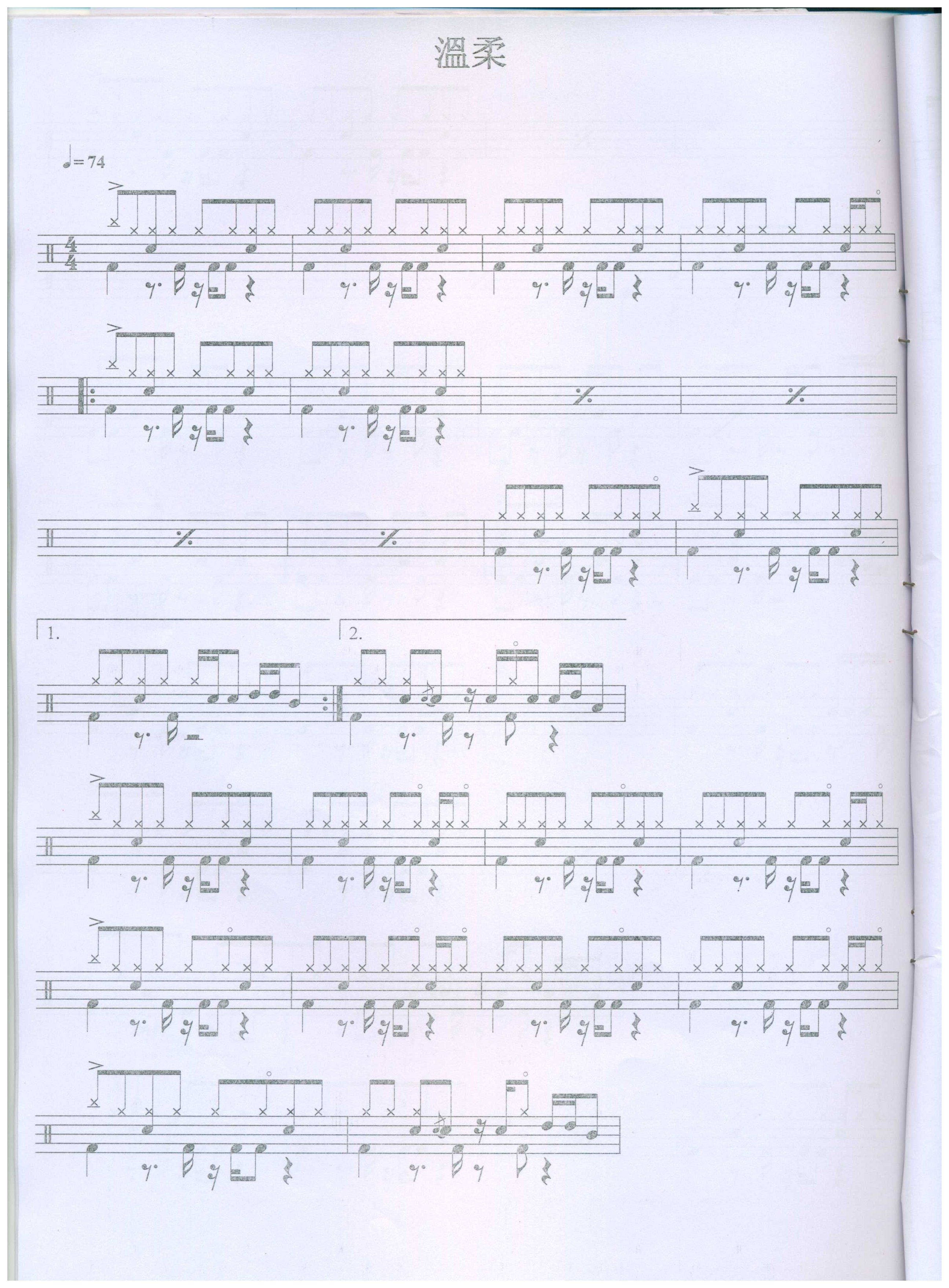 爵士鼓谱【温柔】简谱五线谱附歌词是乐器资源网于2017年03月15日 03:43:40整理更新,内容收录在爵士鼓乐谱栏目;乐器资源网免费分享专业、准确、规范、高清的爵士鼓乐谱简谱五线谱歌词等电子版资料,欢迎在线免费下载;乐器资源网无需注册会员,即可直接免费下载各类乐器学习相关资源。