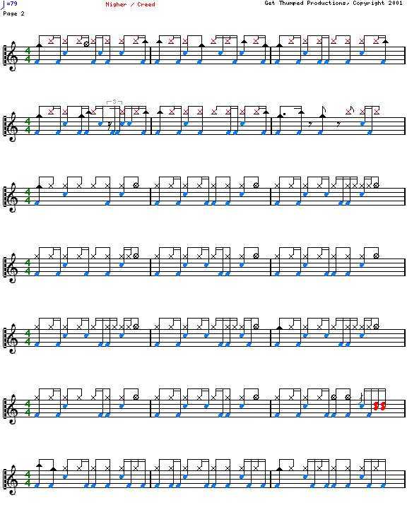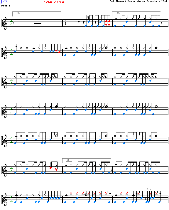 爵士鼓谱【Creed - Higher】简谱五线谱附歌词是乐器资源网于2017年03月16日 02:25:09整理更新,内容收录在爵士鼓乐谱栏目;乐器资源网免费分享专业、准确、规范、高清的爵士鼓乐谱简谱五线谱歌词等电子版资料,欢迎在线免费下载;乐器资源网无需注册会员,即可直接免费下载各类乐器学习相关资源。