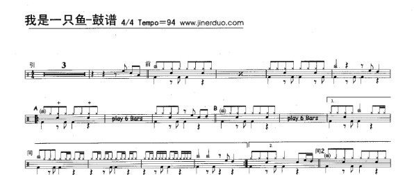 鼓谱架子鼓谱:我是一只鱼歌简谱五线谱附歌词是乐器资源网于2014年06月21日 22:52:58整理更新,内容收录在爵士鼓乐谱栏目;乐器资源网免费分享专业、准确、规范、高清的爵士鼓乐谱简谱五线谱歌词等电子版资料,欢迎在线免费下载;乐器资源网无需注册会员,即可直接免费下载各类乐器学习相关资源。