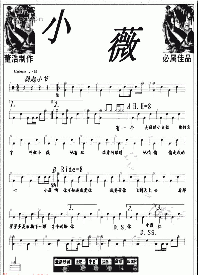 小薇鼓谱简谱五线谱附歌词是乐器资源网于2014年06月26日 11:30:36整理更新,内容收录在爵士鼓乐谱栏目;乐器资源网免费分享专业、准确、规范、高清的爵士鼓乐谱简谱五线谱歌词等电子版资料,欢迎在线免费下载;乐器资源网无需注册会员,即可直接免费下载各类乐器学习相关资源。