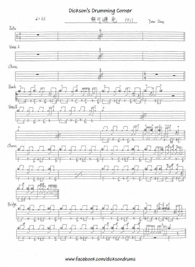 爵士鼓谱:『Dear Jane 無可避免』Drum Score简谱五线谱附歌词是乐器资源网于2014年06月26日 14:21:04整理更新,内容收录在爵士鼓乐谱栏目;乐器资源网免费分享专业、准确、规范、高清的爵士鼓乐谱简谱五线谱歌词等电子版资料,欢迎在线免费下载;乐器资源网无需注册会员,即可直接免费下载各类乐器学习相关资源。