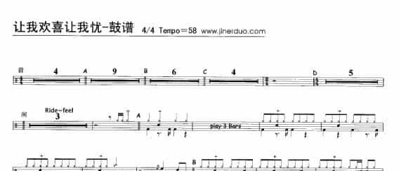 鼓谱:让我欢喜让我忧简谱五线谱附歌词是乐器资源网于2014年06月26日 09:53:27整理更新,内容收录在爵士鼓乐谱栏目;乐器资源网免费分享专业、准确、规范、高清的爵士鼓乐谱简谱五线谱歌词等电子版资料,欢迎在线免费下载;乐器资源网无需注册会员,即可直接免费下载各类乐器学习相关资源。