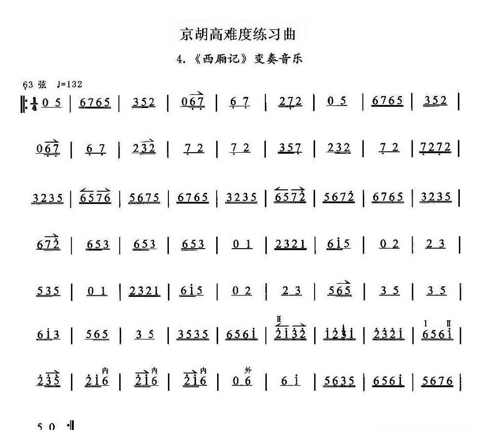 京胡高难度练习曲谱《西厢记》变奏音乐