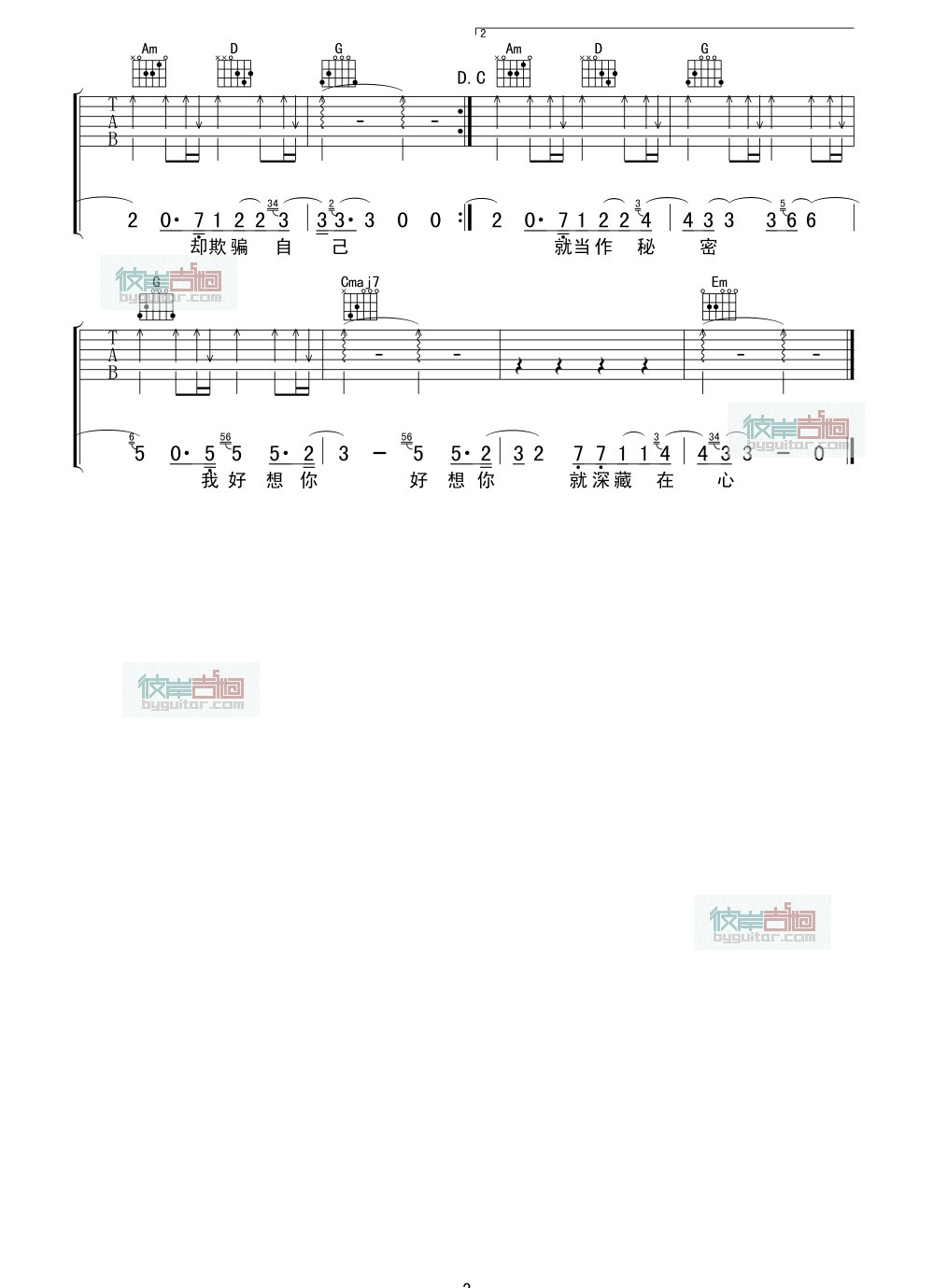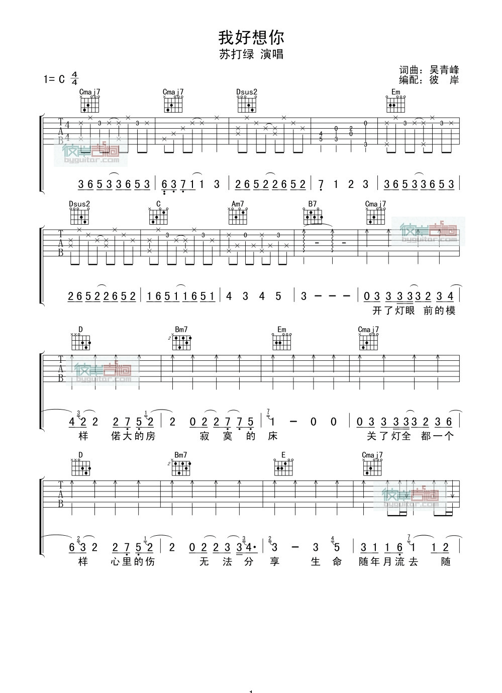 【吉他谱简单版】苏打绿 我好想你吉他谱C调简单版