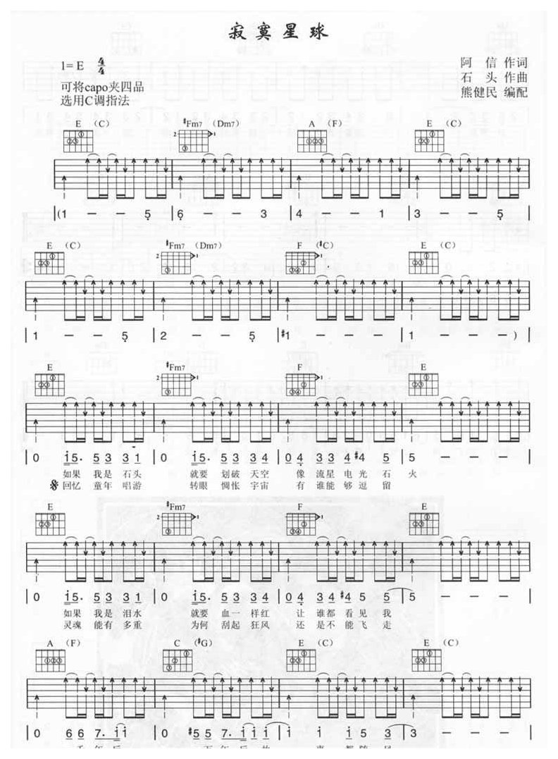 五月天吉他谱【寂寞星球】指弹吉他六线谱简谱五线谱附歌词是乐器资源网于2016年04月20日 18:15:06整理更新,内容收录在吉他乐谱栏目;乐器资源网免费分享专业、准确、规范、高清的吉他乐谱简谱五线谱歌词等电子版资料,欢迎在线免费下载;乐器资源网无需注册会员,即可直接免费下载各类乐器学习相关资源。