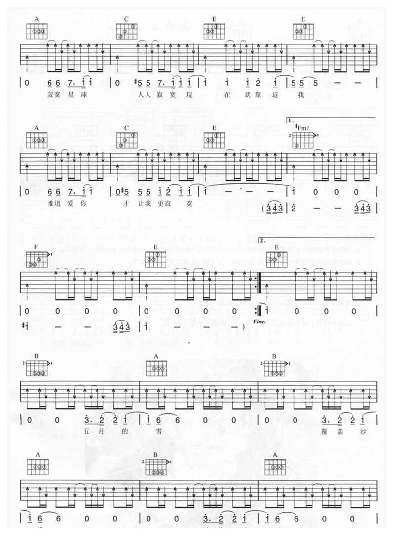 五月天吉他谱【寂寞星球】指弹吉他六线谱