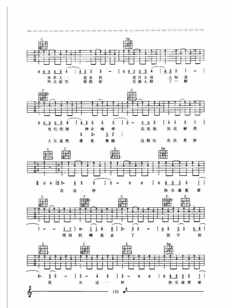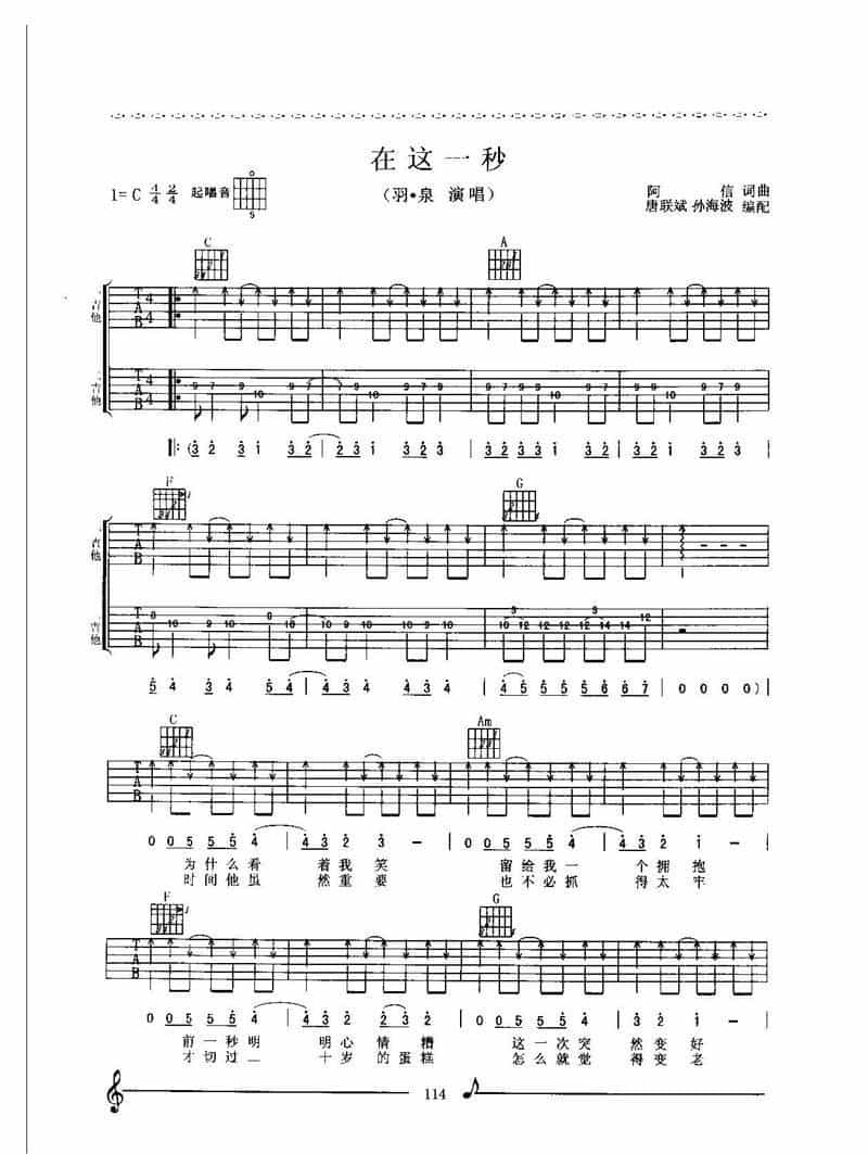羽泉吉他谱 在这一秒简谱五线谱附歌词是乐器资源网于2014年06月22日 12:05:42整理更新,内容收录在吉他乐谱栏目;乐器资源网免费分享专业、准确、规范、高清的吉他乐谱简谱五线谱歌词等电子版资料,欢迎在线免费下载;乐器资源网无需注册会员,即可直接免费下载各类乐器学习相关资源。