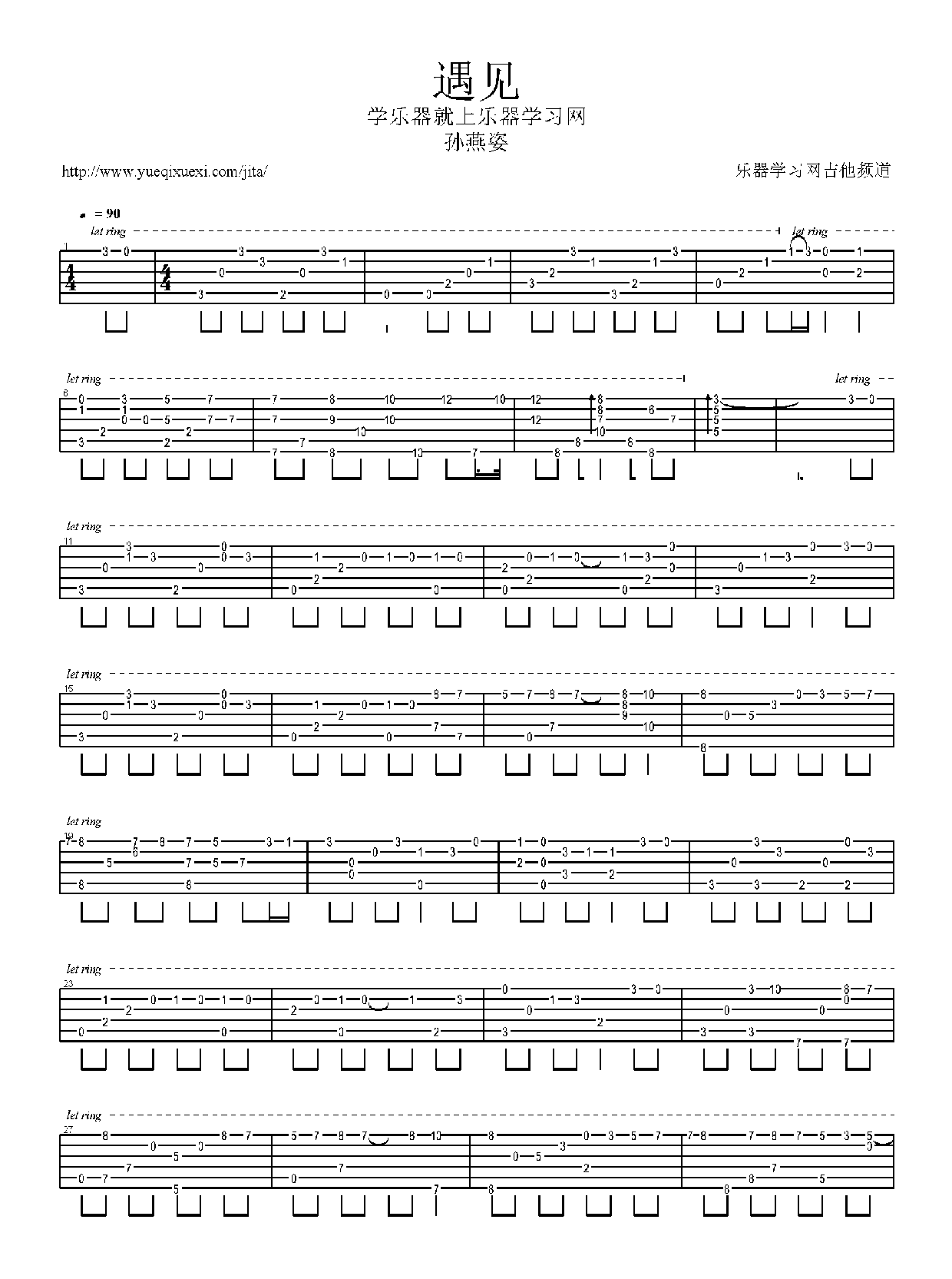 卢家宏吉他谱【孙燕姿 遇见】指弹版简谱五线谱附歌词是乐器资源网于2016年03月22日 21:30:40整理更新,内容收录在吉他乐谱栏目;乐器资源网免费分享专业、准确、规范、高清的吉他乐谱简谱五线谱歌词等电子版资料,欢迎在线免费下载;乐器资源网无需注册会员,即可直接免费下载各类乐器学习相关资源。
