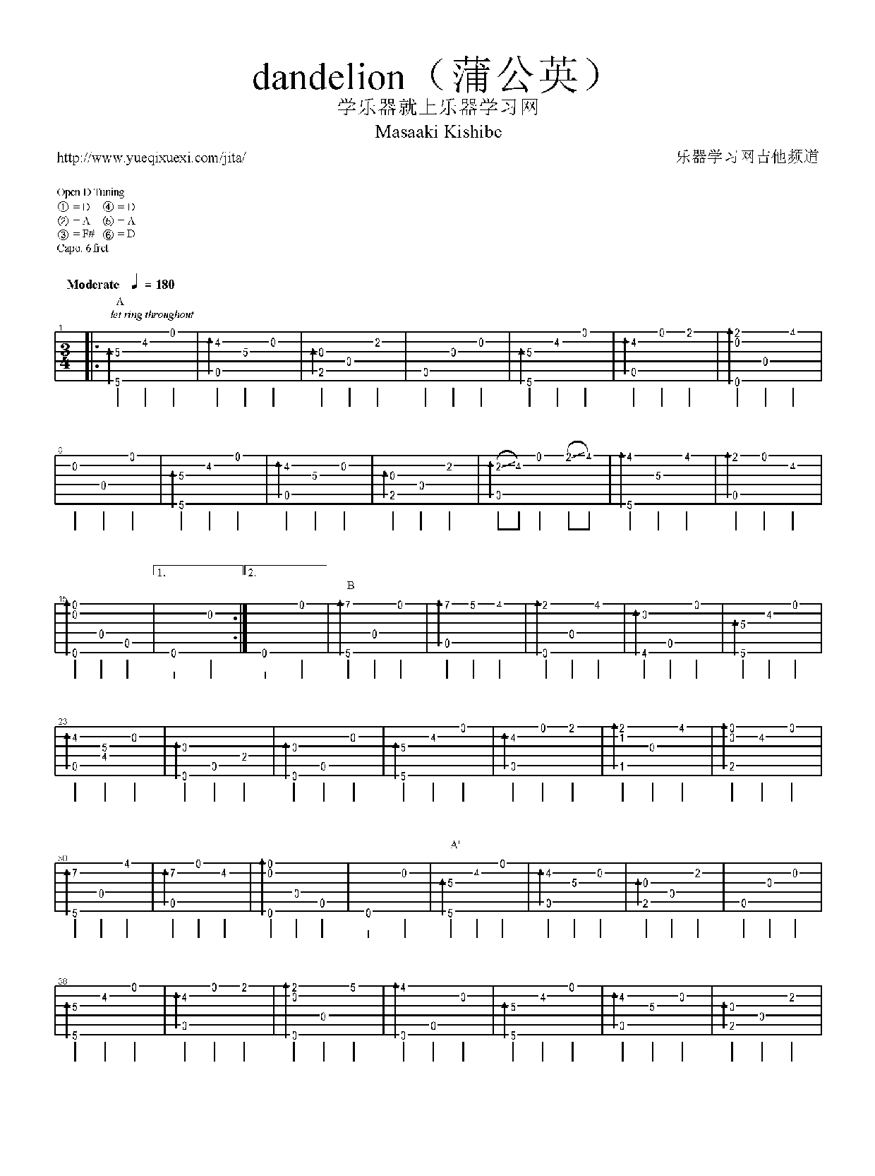 岸部真明吉他谱【dandelion 蒲公英】简谱五线谱附歌词是乐器资源网于2016年02月28日 10:55:03整理更新,内容收录在吉他乐谱栏目;乐器资源网免费分享专业、准确、规范、高清的吉他乐谱简谱五线谱歌词等电子版资料,欢迎在线免费下载;乐器资源网无需注册会员,即可直接免费下载各类乐器学习相关资源。