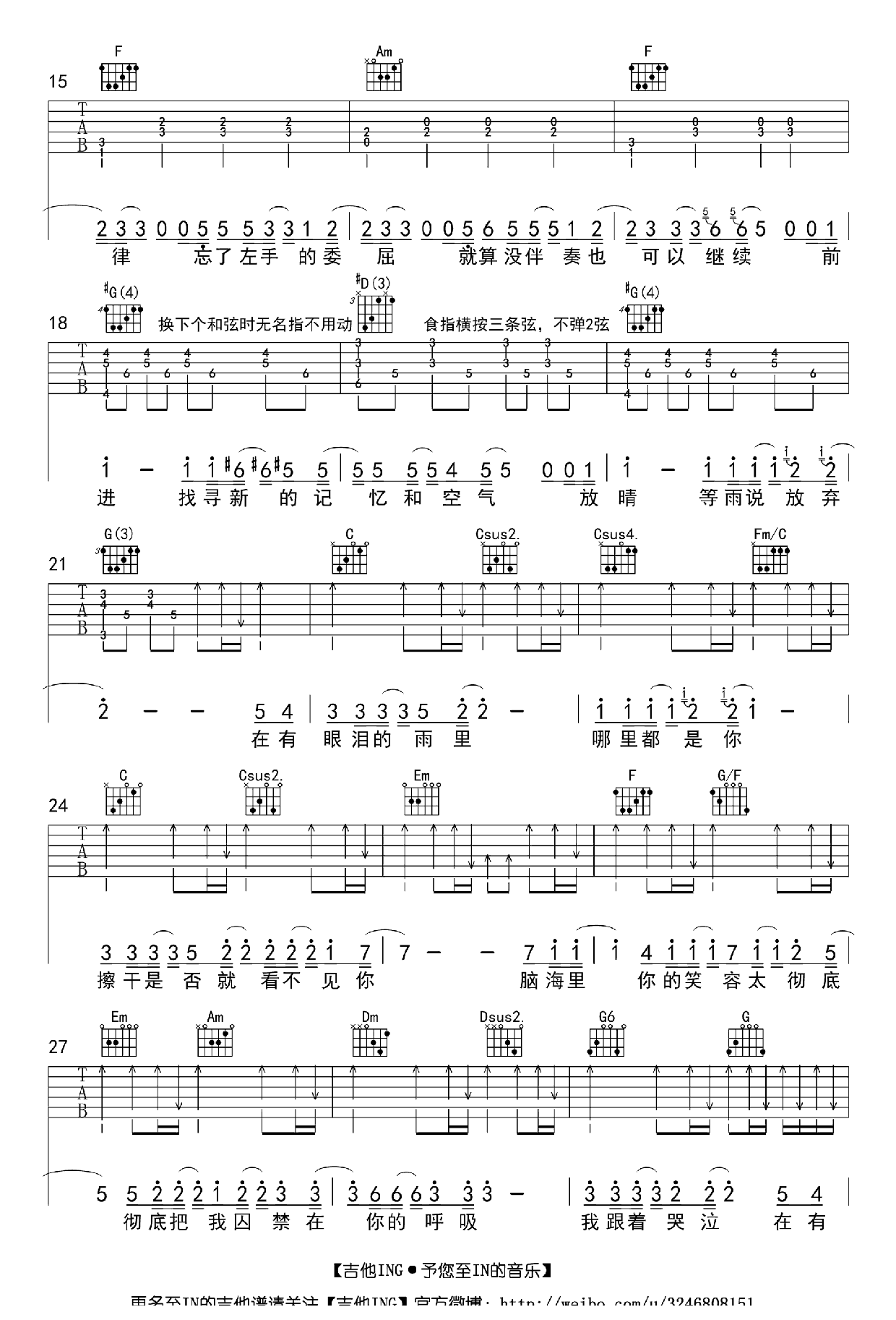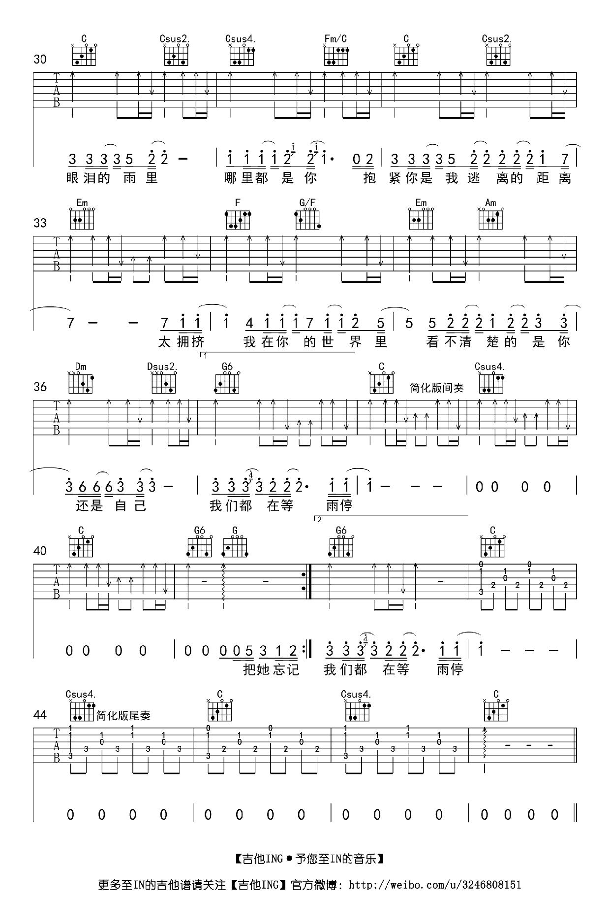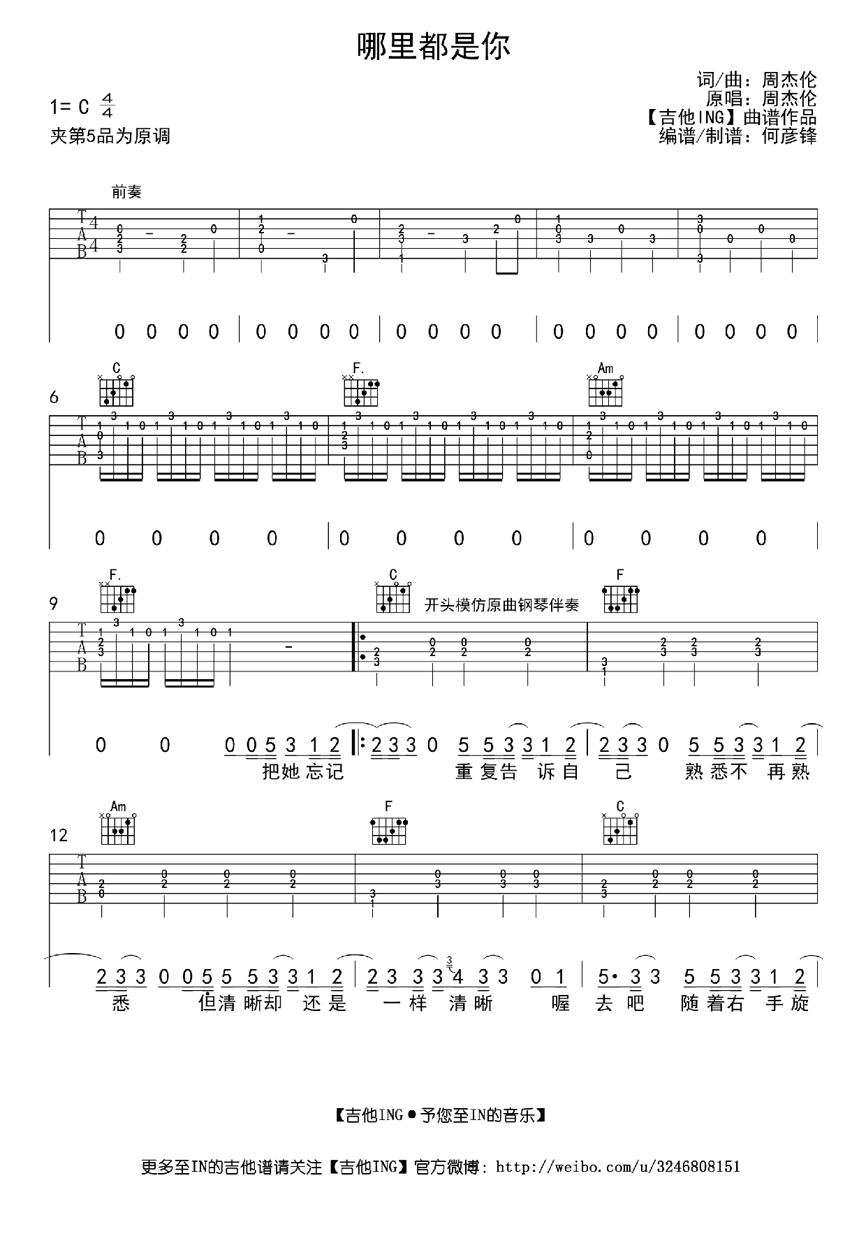 周杰伦吉他谱【哪里都是你】吉他谱C调高清版