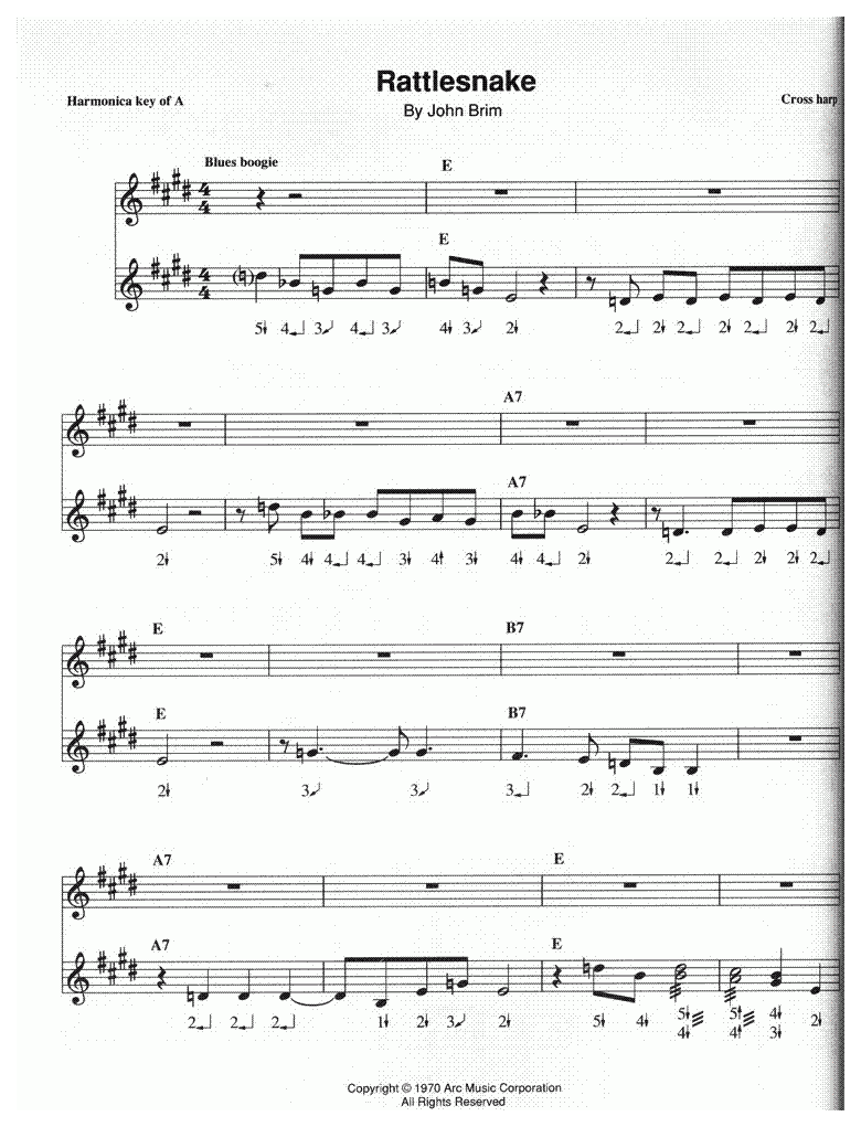 口琴二重奏谱【rattlesnake】by john brim 蓝调口琴重奏曲简谱五线谱附歌词是乐器资源网于2015年05月01日 18:56:57整理更新,内容收录在口琴乐谱栏目;乐器资源网免费分享专业、准确、规范、高清的口琴乐谱简谱五线谱歌词等电子版资料,欢迎在线免费下载;乐器资源网无需注册会员,即可直接免费下载各类乐器学习相关资源。