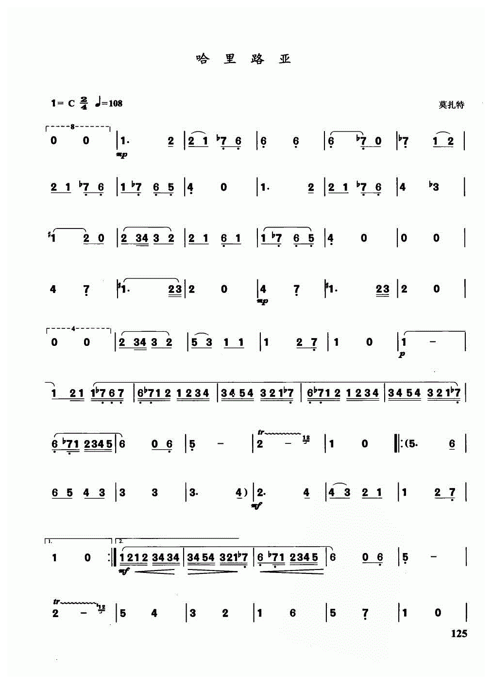 半音阶口琴简谱【哈里路亚】莫扎特曲 小快板