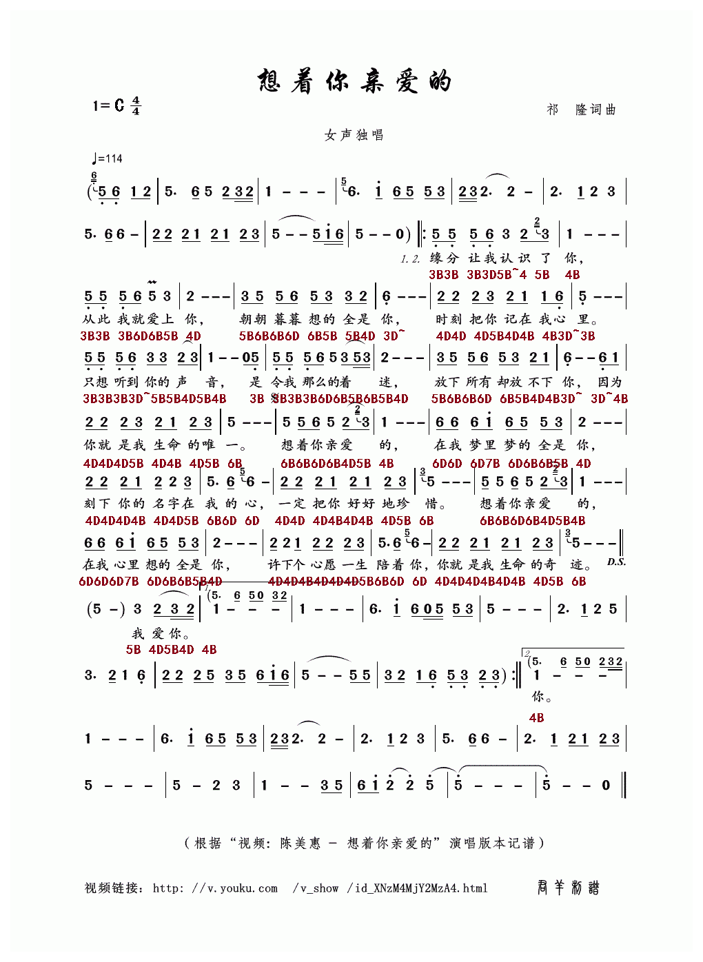 【BD口琴谱】想着你亲爱 简谱对照简谱五线谱附歌词是乐器资源网于2015年11月20日 11:05:45整理更新,内容收录在口琴乐谱栏目;乐器资源网免费分享专业、准确、规范、高清的口琴乐谱简谱五线谱歌词等电子版资料,欢迎在线免费下载;乐器资源网无需注册会员,即可直接免费下载各类乐器学习相关资源。