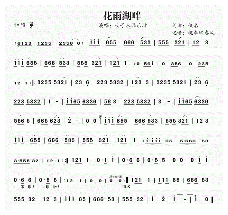 【花雨湖畔】十孔口琴谱简谱五线谱附歌词是乐器资源网于2015年03月24日 17:45:10整理更新,内容收录在口琴乐谱栏目;乐器资源网免费分享专业、准确、规范、高清的口琴乐谱简谱五线谱歌词等电子版资料,欢迎在线免费下载;乐器资源网无需注册会员,即可直接免费下载各类乐器学习相关资源。