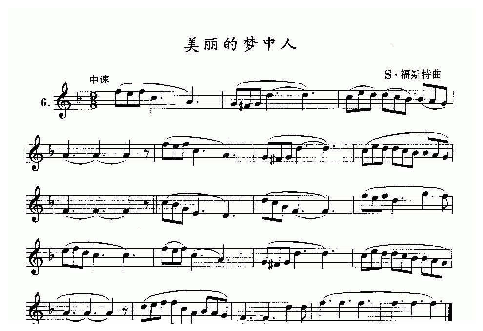乐器资源网 yueqiziyuan.comS.福斯特曲,中速,八六拍,五线谱,半音阶口琴入门简易乐曲